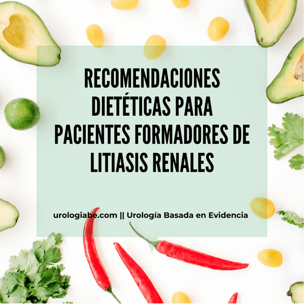 Existe evidencia cientifica de buena calidad que sugiere que algunas modificaciones dietéticas sencillas (y otras no tanto) pueden ayudar a disminuir la formación de litiasis renales piedras en los riñones) en pacientes que ya las han padecido.