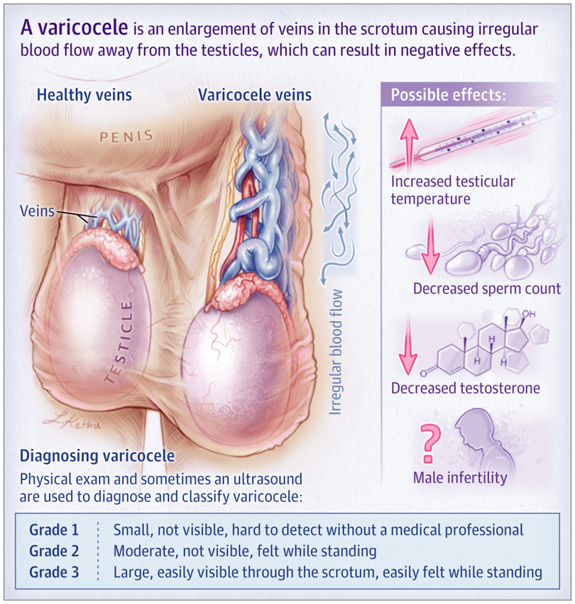 - Varicoceles. Daniel C. Sasson, BA; James A. Kashanian, MD. JAMA. 2020;323(21):2210. doi:10.1001/jama.2020.0397